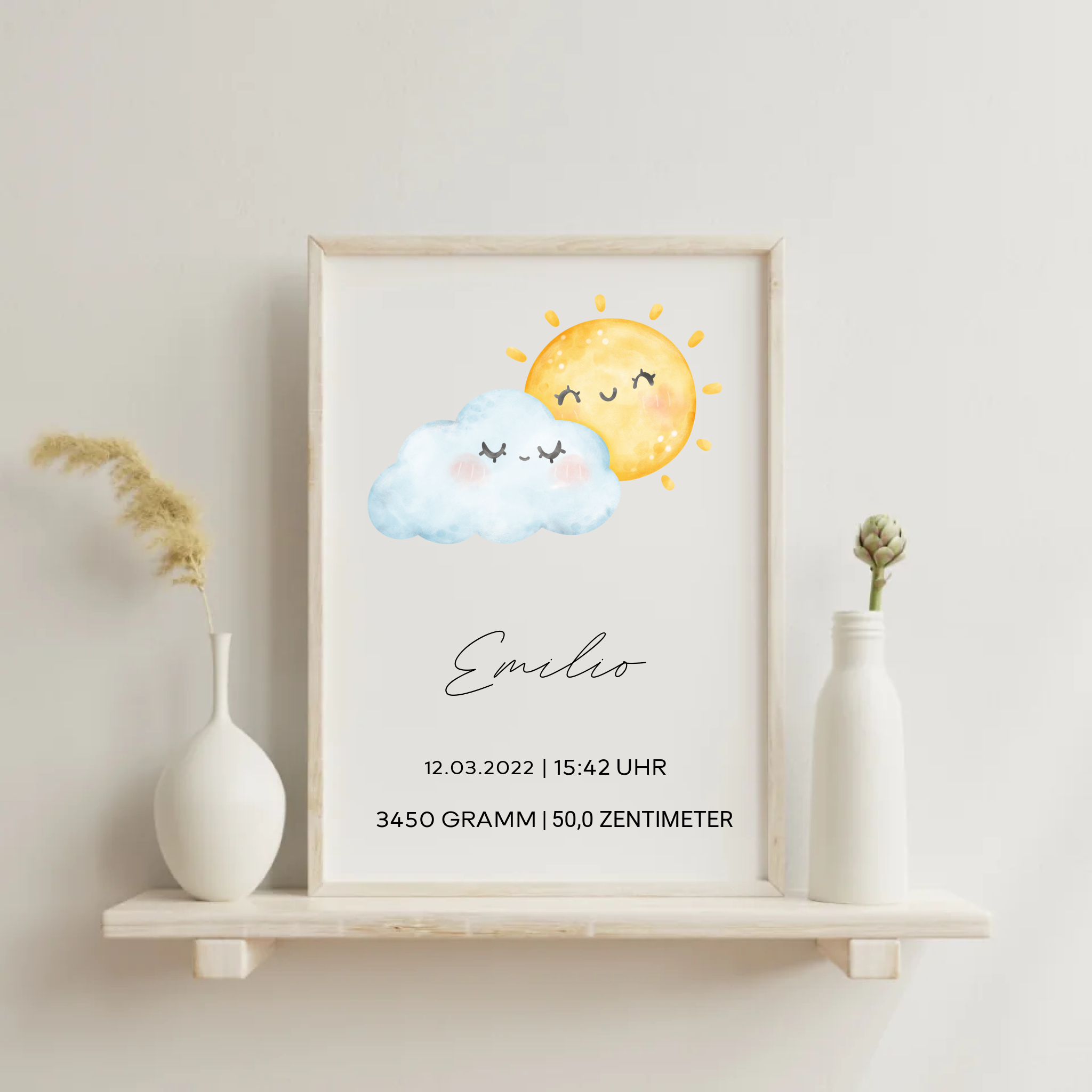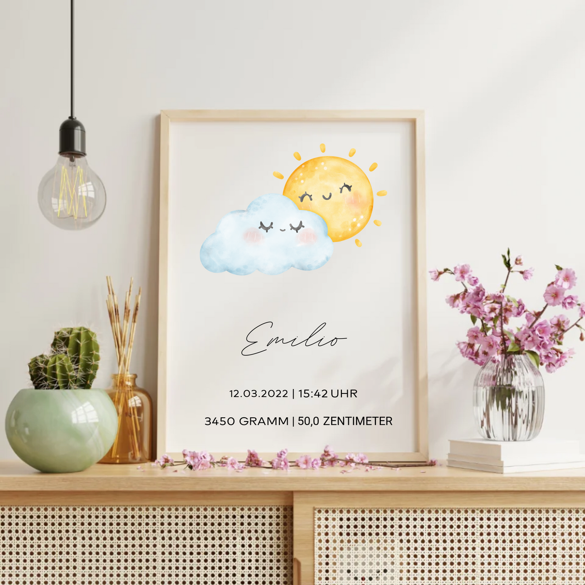 Personalisierbares Geburtsposter 'Sonne & Wolke'